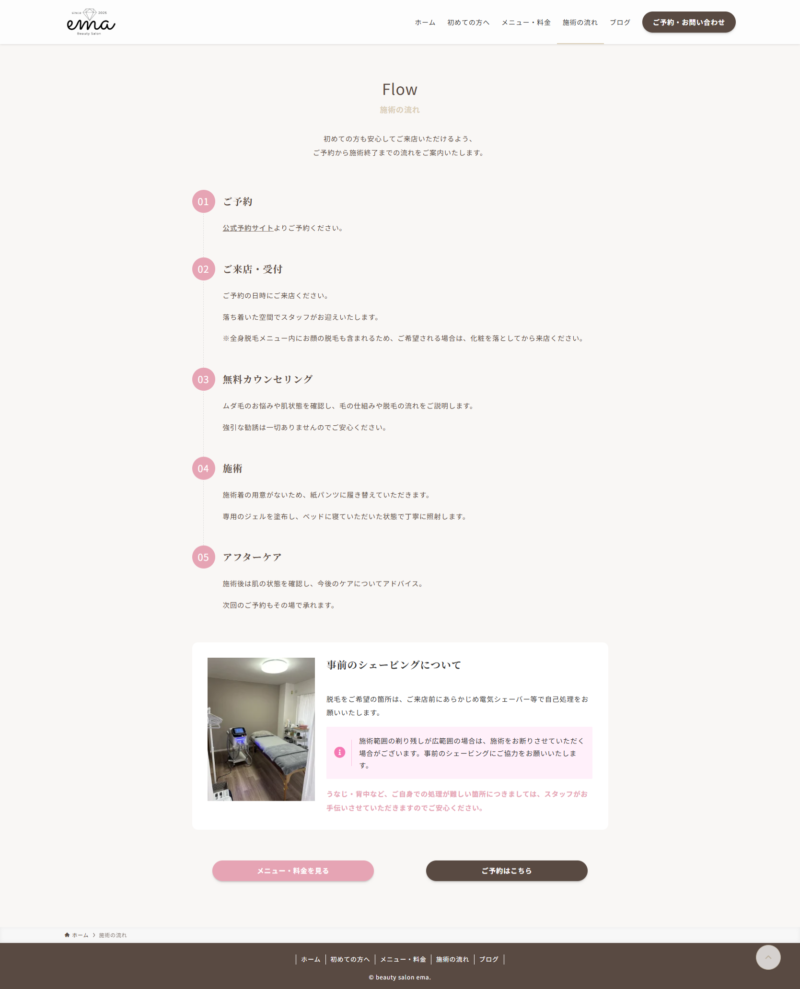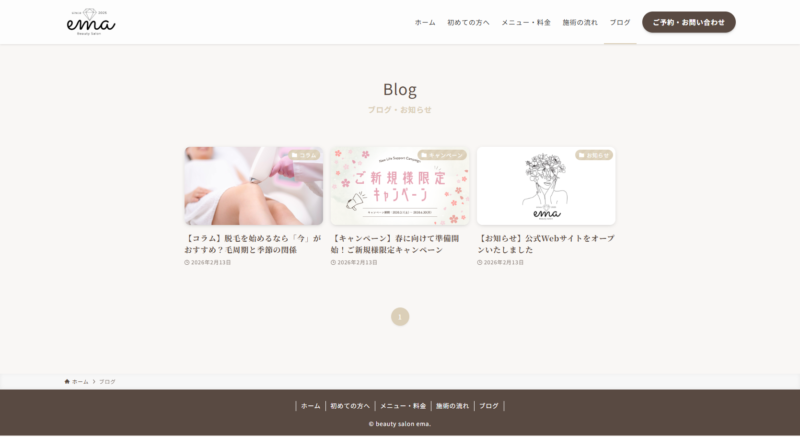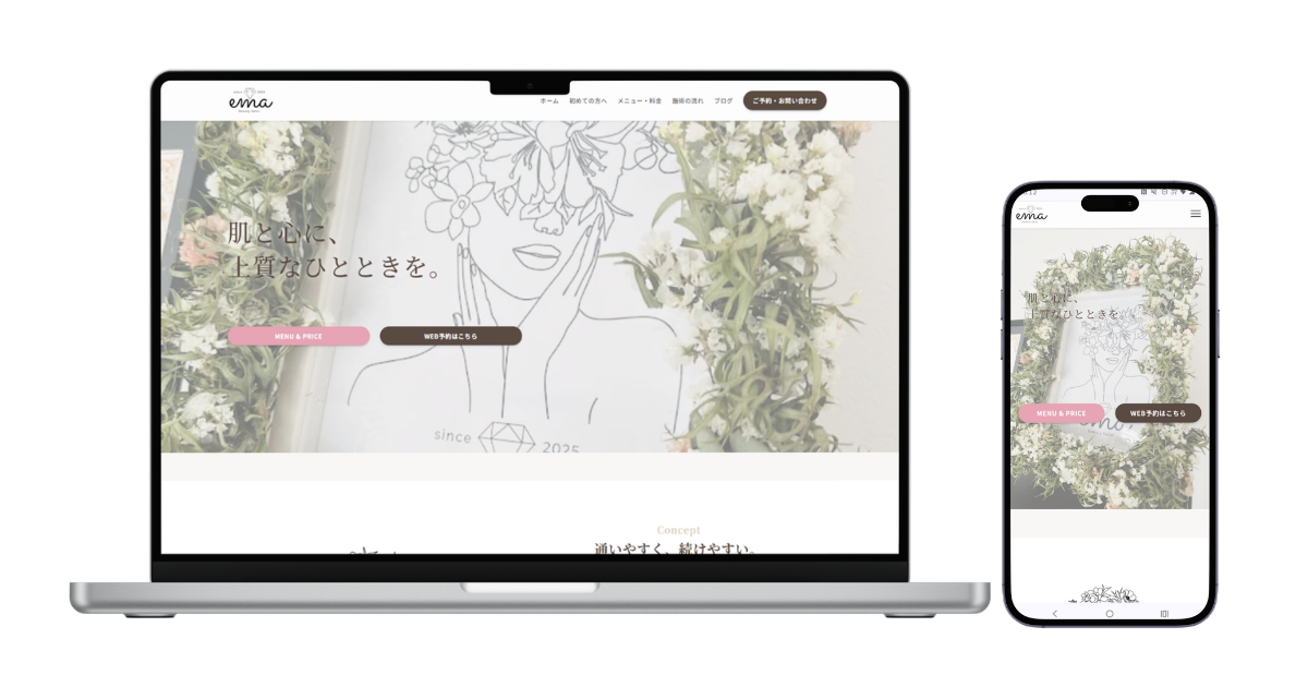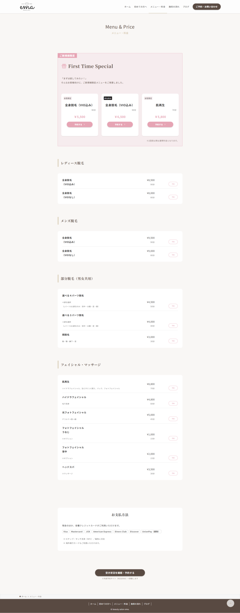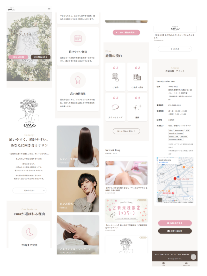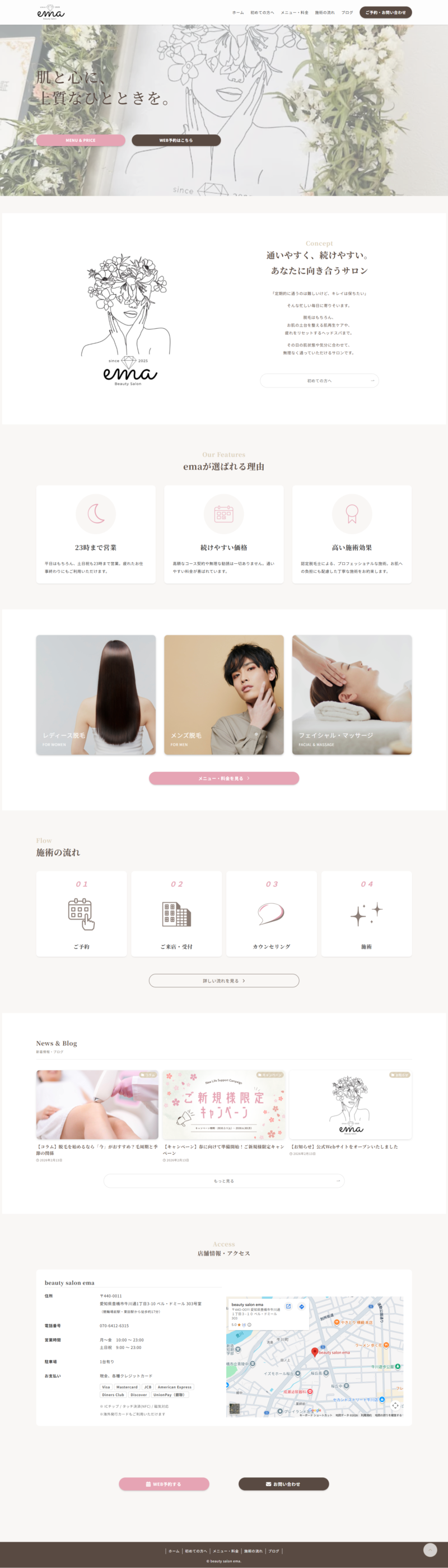 愛知県豊橋市で、美容脱毛サロンを営む「beauty salon ema」様のホームページを制作させていただきました。
